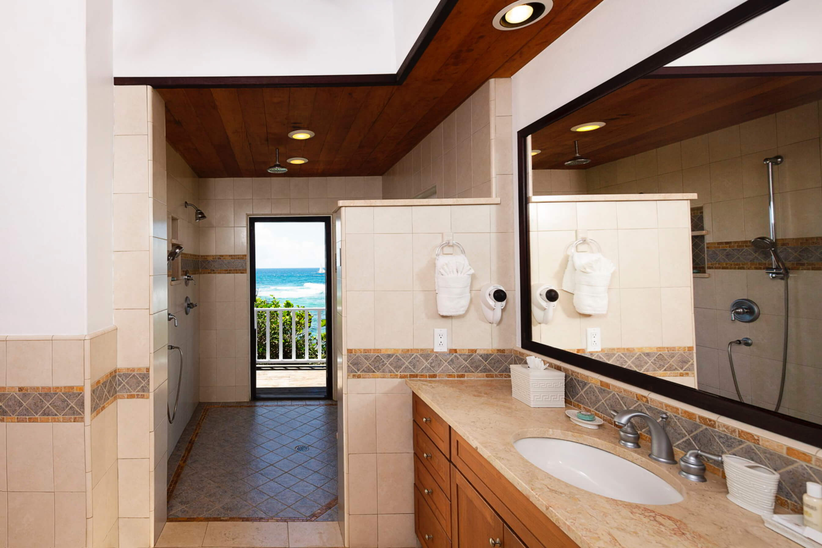 The bedrooms have private marble finished bathrooms each with step in showers and beautiful ever changing ocean views.