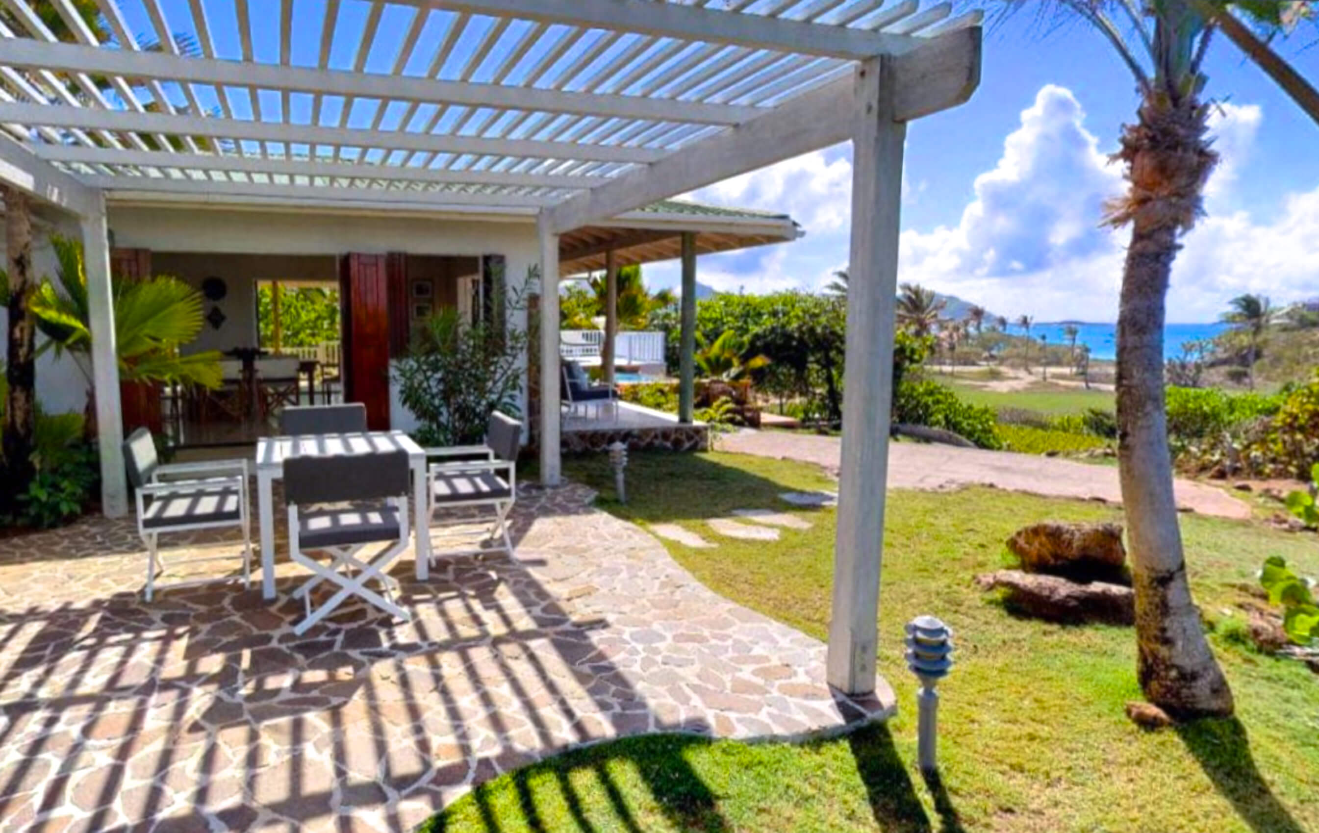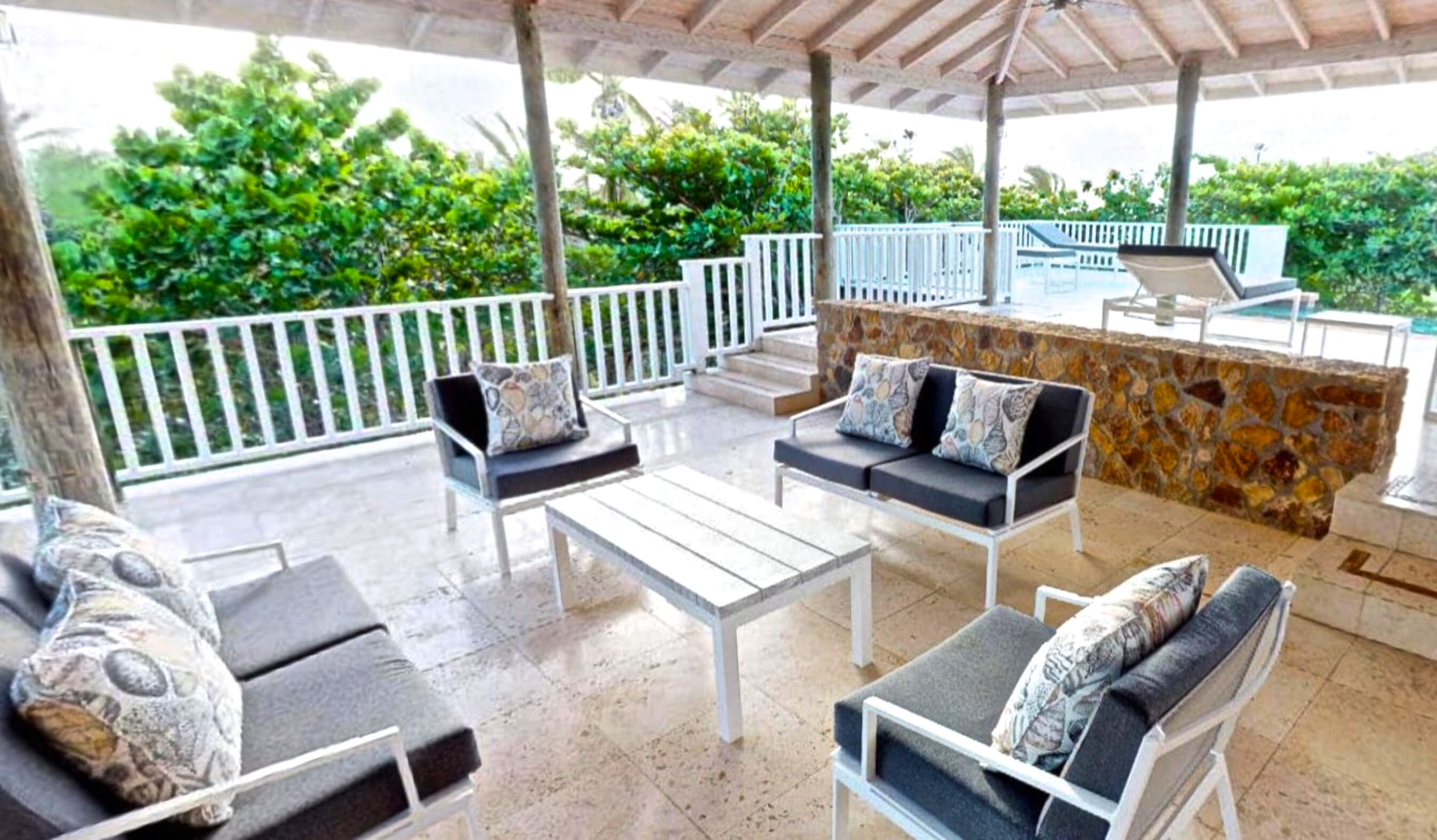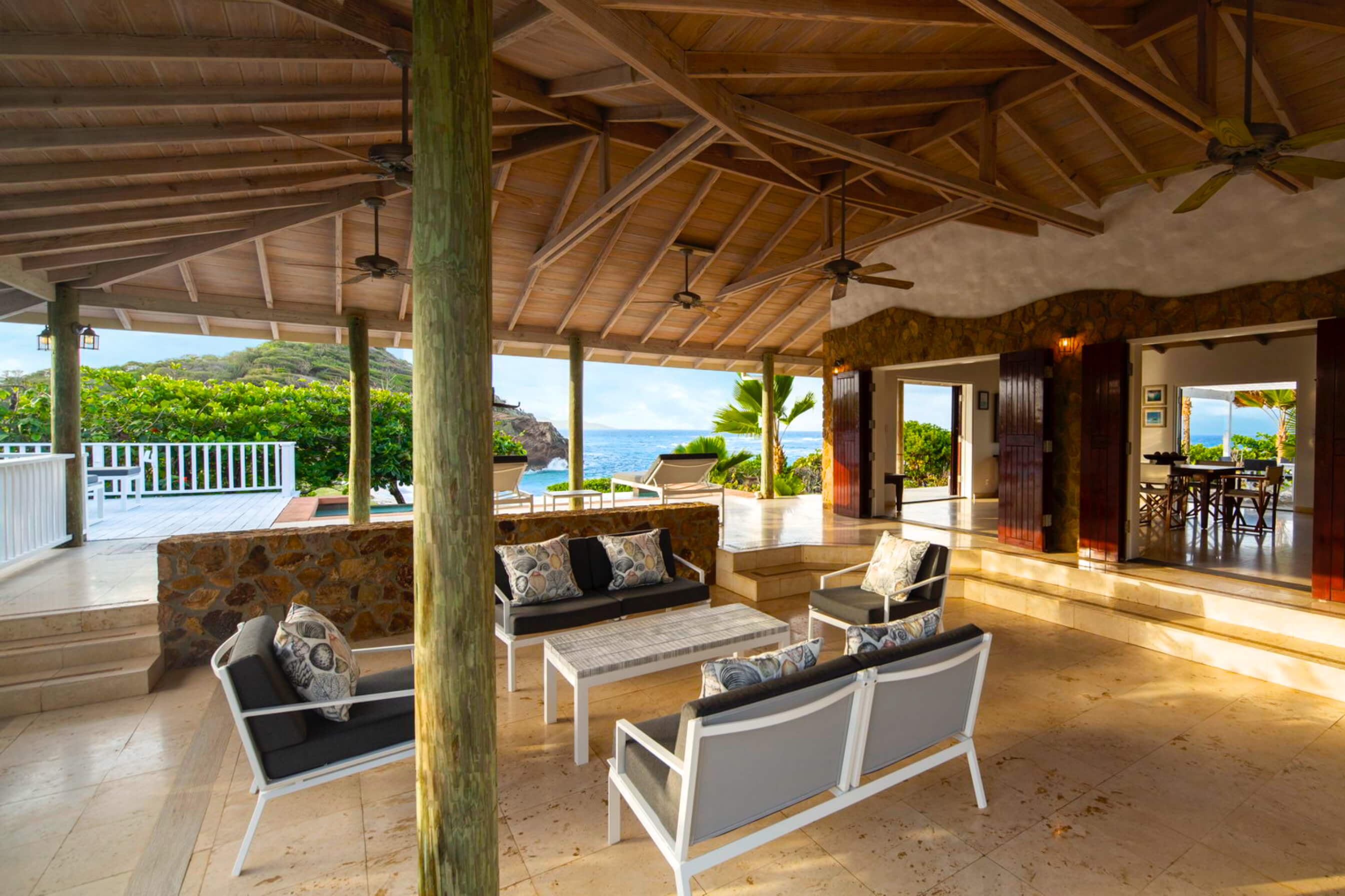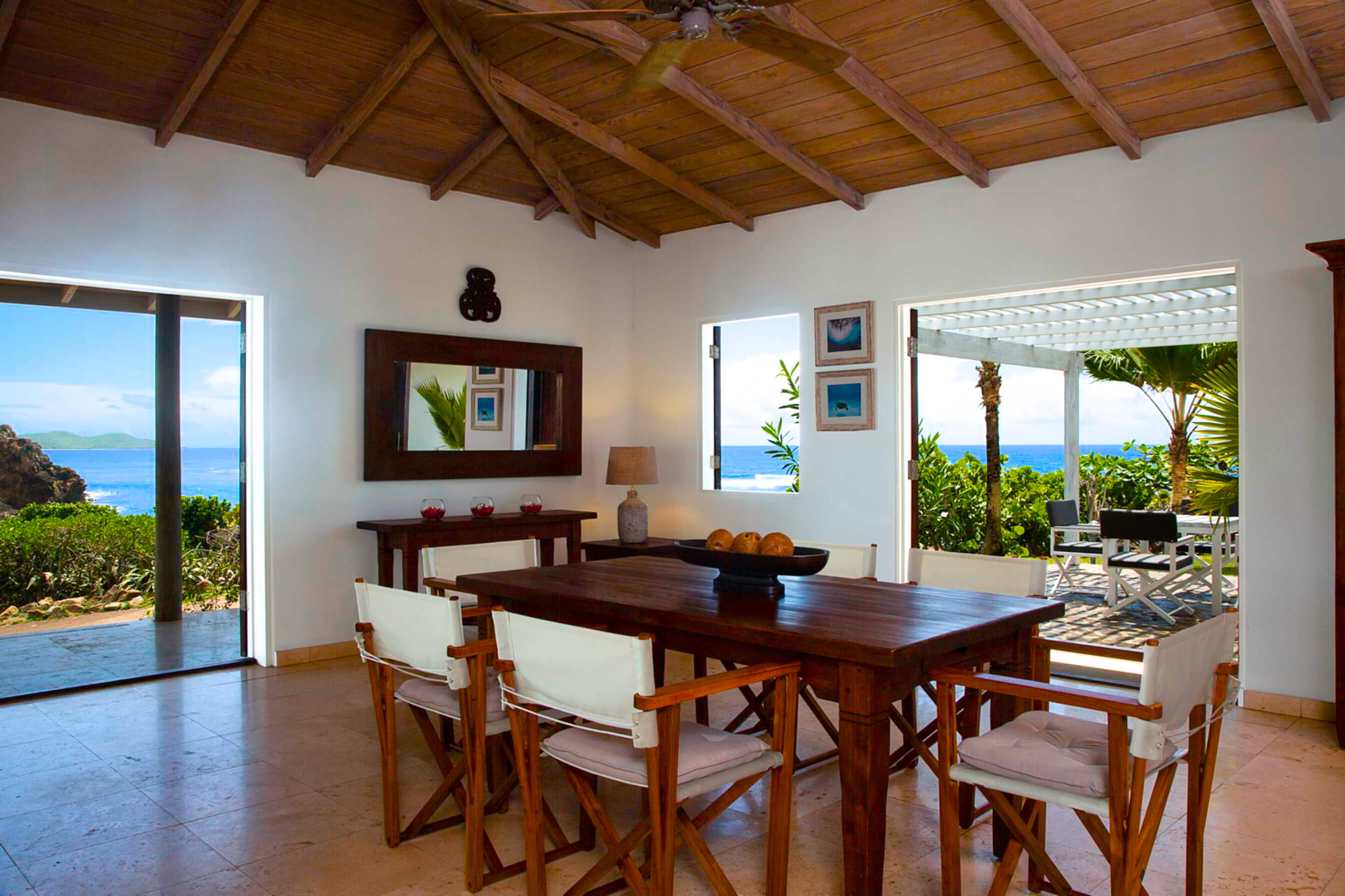 As well as the decks and pool guests can luxuriate outdoors under the shaded arbor patio and eat on the tiled dining terrace.