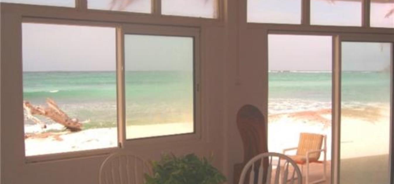 This charming beach villa is circular and surrounded by windows and glass doors drawing in as much of the caribbean light as possible.